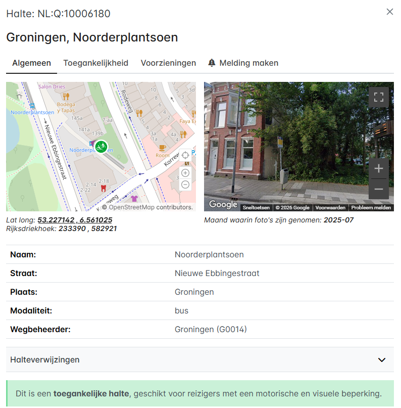 Hierin wordt aangegeven dat een halte geschikt is voor reizigers met een motorische en/of visuele beperking.